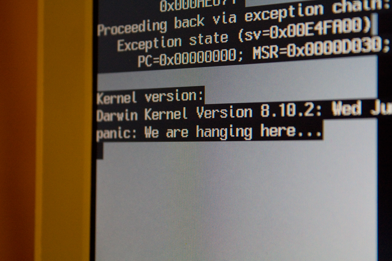 OK, I’ll try the 10.4 disc we have, again, but I just kept getting Kernel Panics. I was almost having a Kernel Panic myself at this point. Three hours into my fix, and I was stumped. Why the hell is it doing this? I’ve replaced the drive, and everything else is fine. Why are you doing this to me? I came to the conclusion the discs were for a Intel based Mac, and most probably tied to my MacBook somehow, so would be no good for me to use on the PPC iBook.